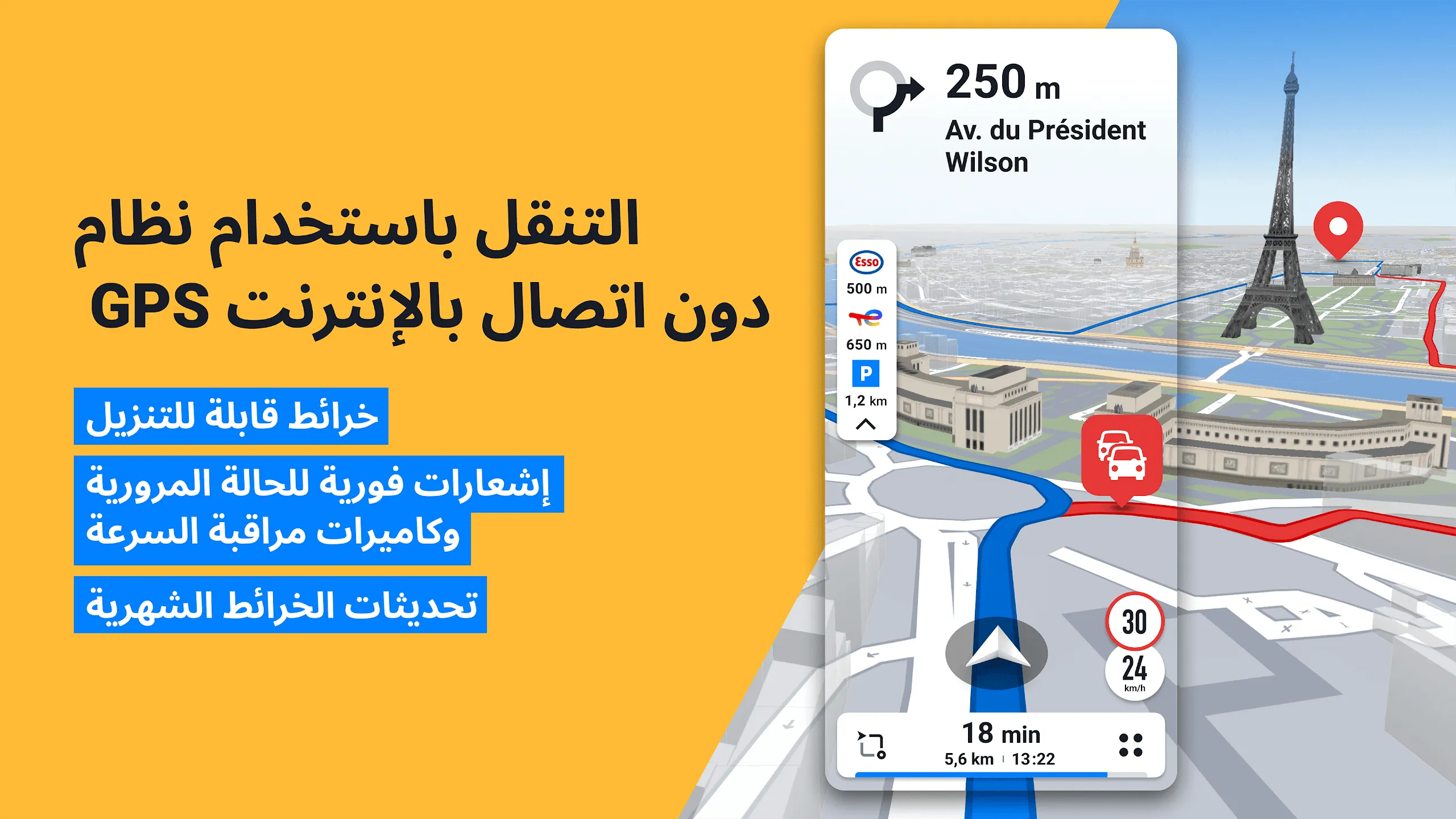 نظام التحذيرات الذكية والإشعارات الفورية في تطبيق Sygic GPS مهكر