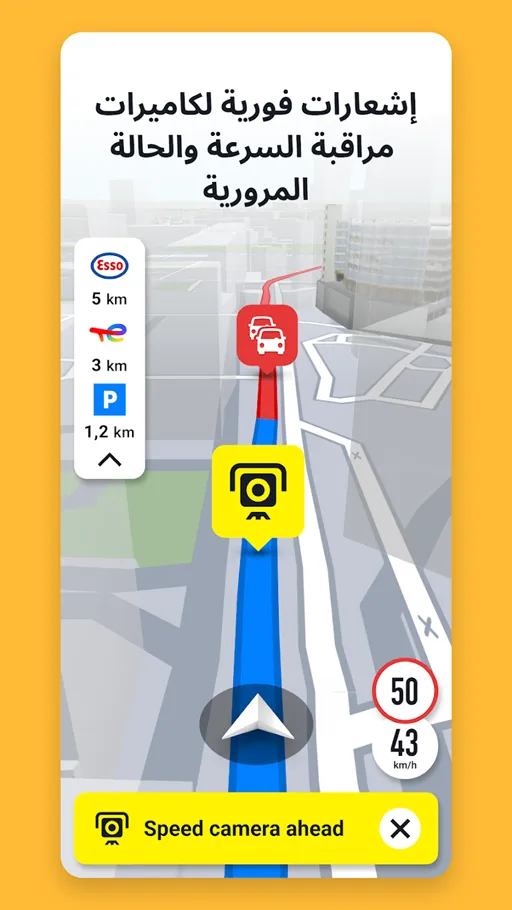 من أهم المزايا داخل تطبيق Sygic مهكر نظام التنبيهات المرورية الفورية الذي يمدك بمعلومات دقيقة حول حالة الطريق قبل الوصول إليه، مثل وجود ازدحام مروري أو حوادث أو أعمال صيانة مفاجئة. تساعدك هذه الإخطارات على اختيار طريق بديل يوفر الوقت والجهد. بالإضافة إلى ذلك، يعرض التطبيق تحذيرات خاصة بكاميرات مراقبة السرعة المنتشرة على الطرق، مما يساعدك على الالتزام بالسرعة القانونية وتجنب المخالفات. هذه الميزة تعزز من مستوى الأمان أثناء القيادة وتمنحك تجربة تنقل أكثر راحة واطمئناناً يومياً.